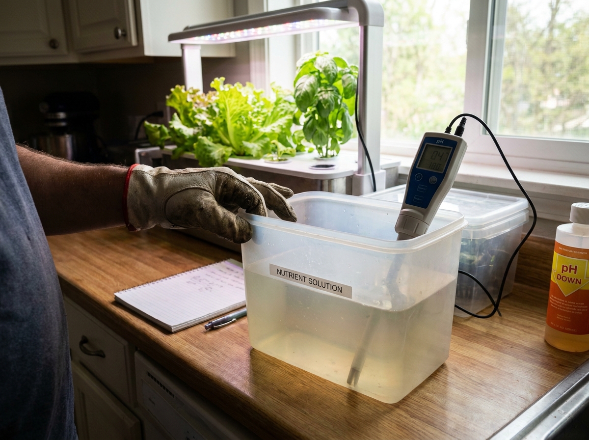 Por isso, não basta preparar a solução uma vez e esquecer. O manejo envolve acompanhar concentração, pH, reposição de água, consumo pelas plantas, temperatura e limpeza do sistema. Quando isso entra na rotina, a hidroponia fica muito mais estável.