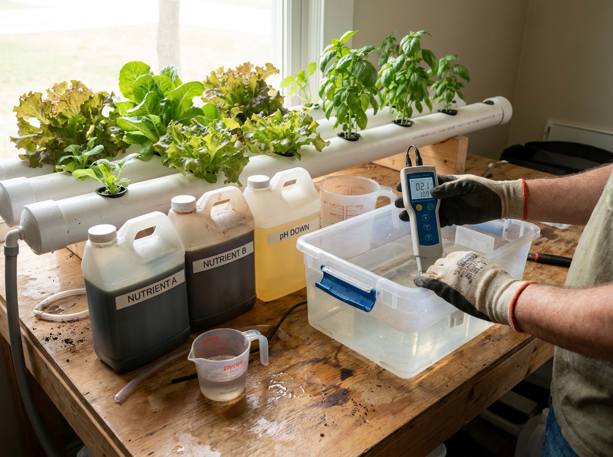 O quarto é a rotina de monitoramento. Em hidroponia, nutriente não é algo para preparar uma vez e esquecer.